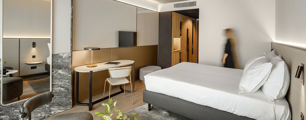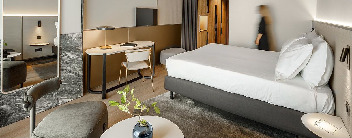 O quarto Classic Double, com cama de casal*, conjuga o conforto com a tranquilidade. Cada quarto foi criado com detalhes funcionais e oferecem todas as comodidades (roupeiro, secador de cabelo, produtos de higiene gratuitos). O quarto é climatizado, tem TV com canais locais e internacionais, mini-bar e Wi-Fi gratuita. Poderá ter acesso online a jornais e revistas disponibilizados gratuitamente no nosso hotel através da app Press Reader. Também disponibilizamos o serviço de despertar. Room service disponível, com preçário e horário específicos. Estacionamento gratuito para reservas no nosso site. Acesso gratuito ao nosso Wellness Center e piscina exterior.