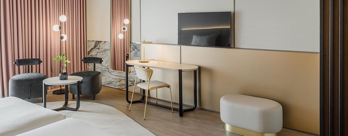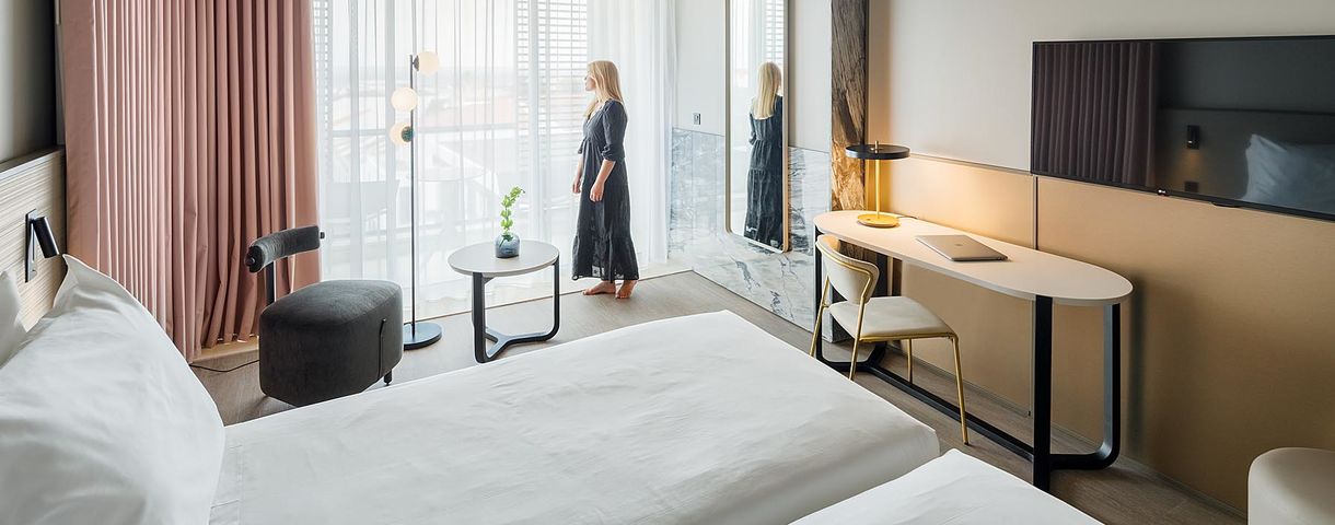 O quarto Classic Twin (2 camas individuais) conjuga o conforto com a tranquilidade. Cada quarto foi criado com detalhes funcionais e oferecem todas as comodidades (roupeiro, secador de cabelo, produtos de higiene gratuitos). O quarto é climatizado, tem TV com canais locais e internacionais, mini-bar e Wi-Fi gratuita. Poderá ter acesso online a jornais e revistas disponibilizados gratuitamente no nosso hotel através da app Press Reader. Também disponibilizamos o serviço de despertar. Room service disponível, com preçário e horário específicos. Estacionamento gratuito para reservas no nosso site. Acesso gratuito ao Wellness Center e piscina exterior.
