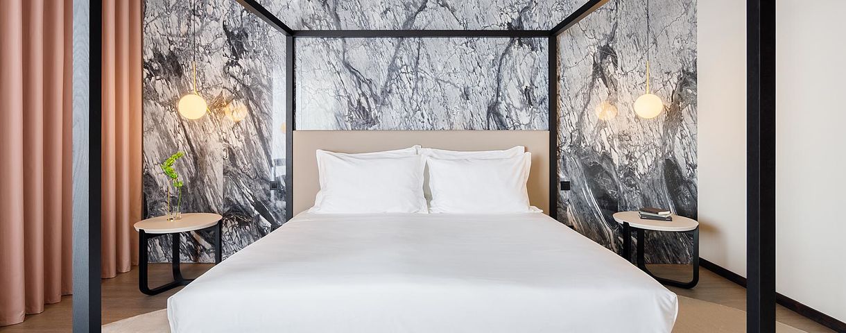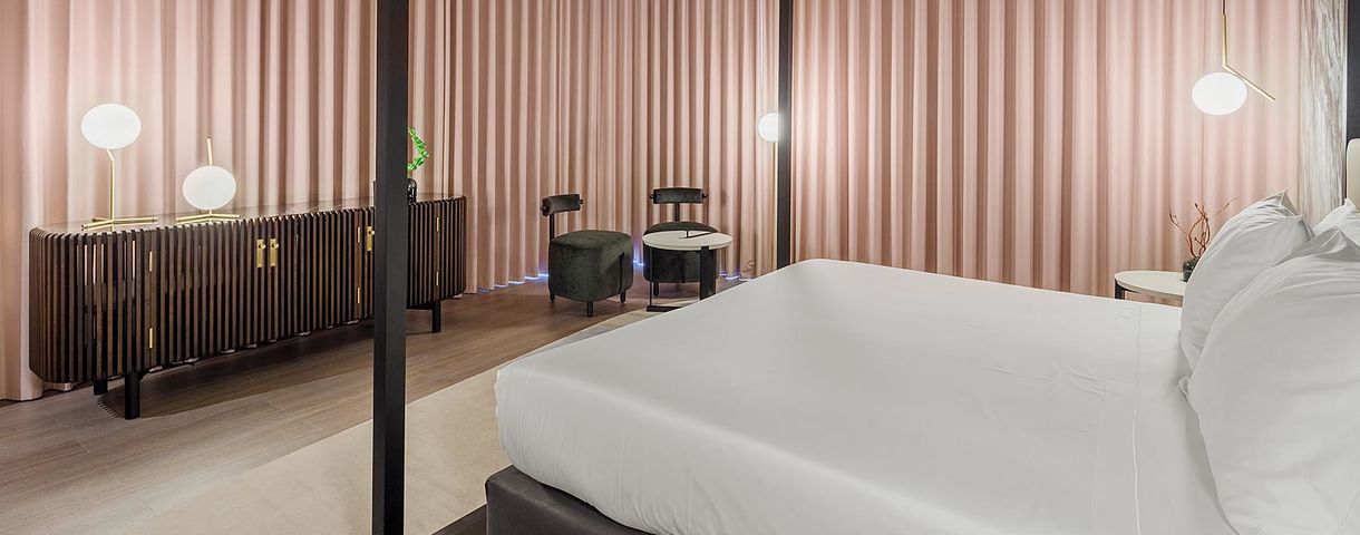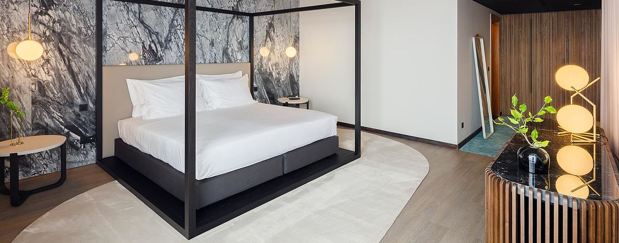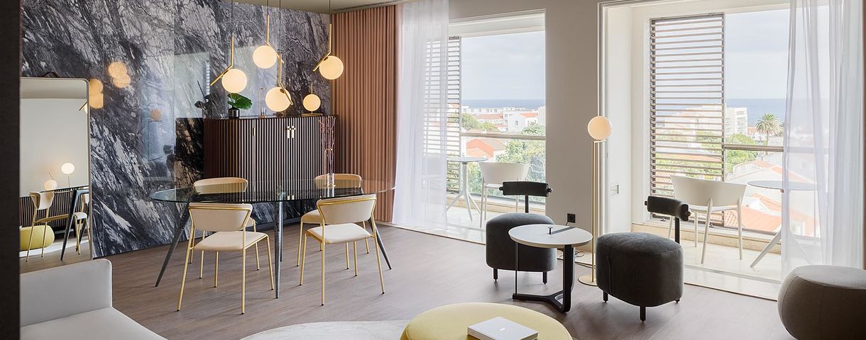 A Suite possui cama king size, sala de estar (com sofá-cama), hall de entrada, 2 casas de banho (1 no quarto principal), com varanda com vista para o Oceano Atlântico. Cada quarto foi criado com detalhes funcionais e oferecem todas as comodidades (roupeiro, secador de cabelo, roupão, produtos de higiene, água durante a estadia). O quarto é climatizado, tem TV com canais locais e internacionais, mini-bar e Wi-Fi gratuita. Poderá ter acesso online a jornais e revistas disponibilizados gratuitamente no nosso hotel através da app Press Reader. Também disponibilizamos o serviço de despertar. Room service disponível, com preçário e horário específicos. Estacionamento gratuito. Máquina de café Nespresso (oferta de 4 cápsulas diárias). Acesso gratuito ao Wellness Center e piscina exterior.